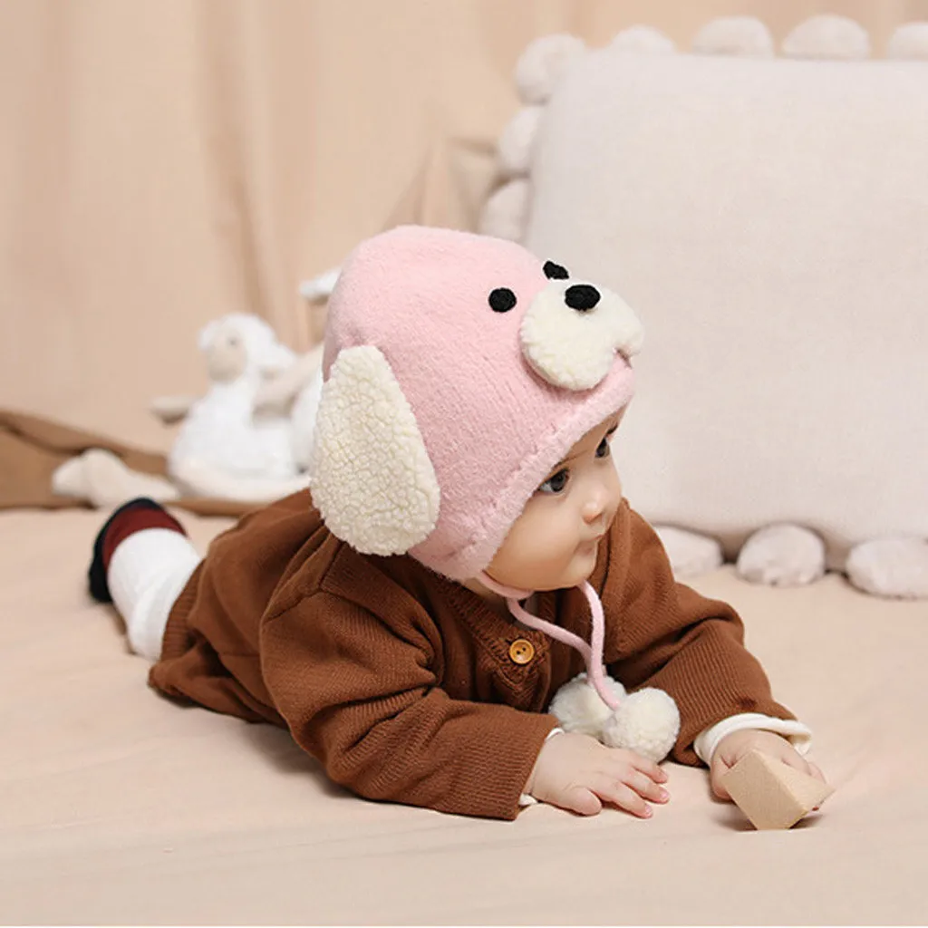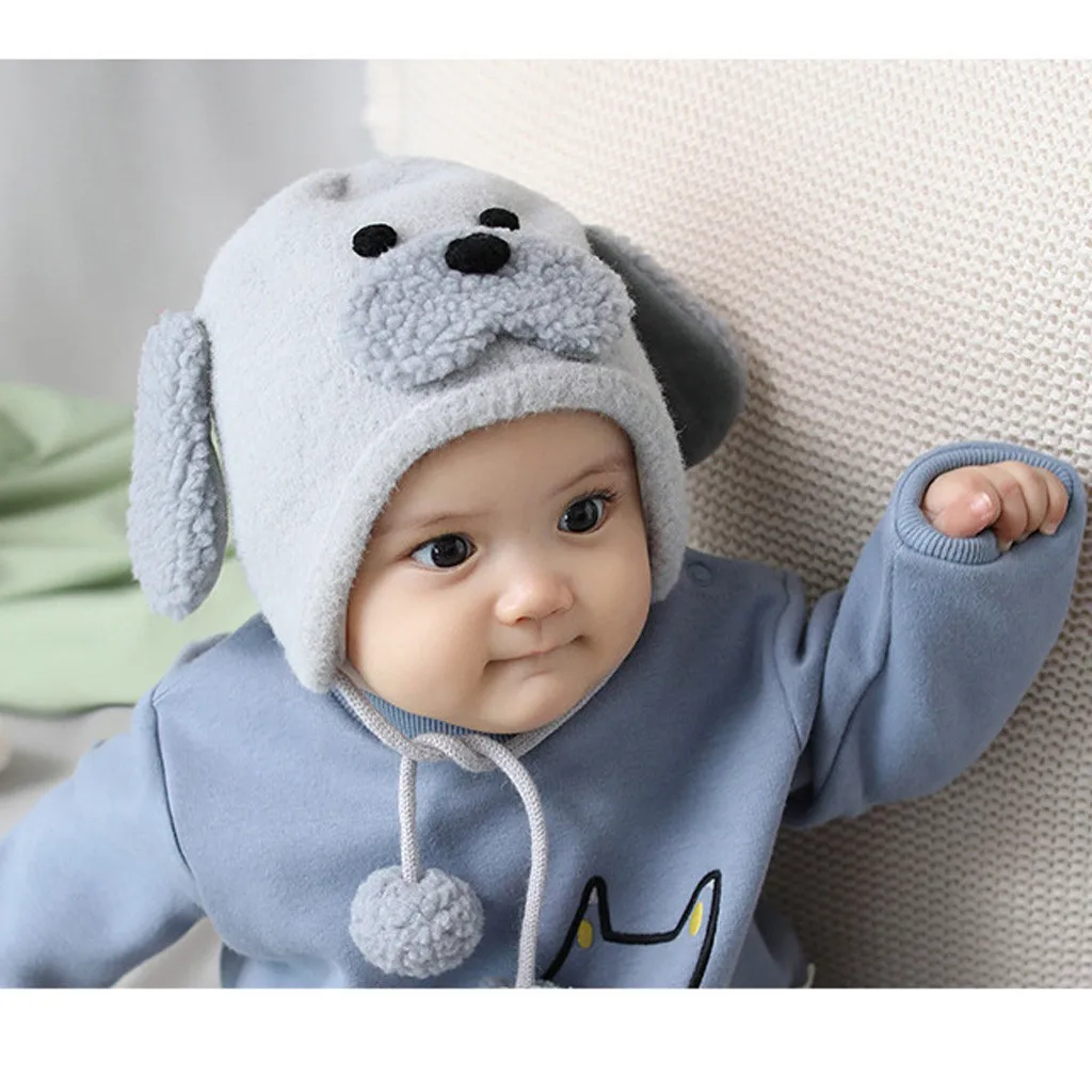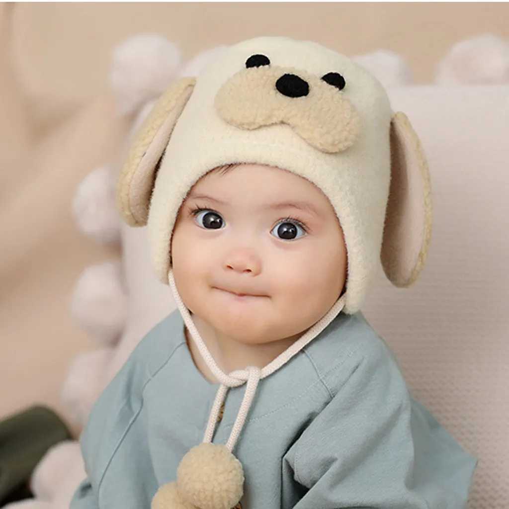 Осень-зима, детская шапка, Супер милые теплые шапки с рисунком собаки + шарф, Детские кроше вязаные шапочки для девочек и мальчиков, реквизит для фотосессии, HOOLER