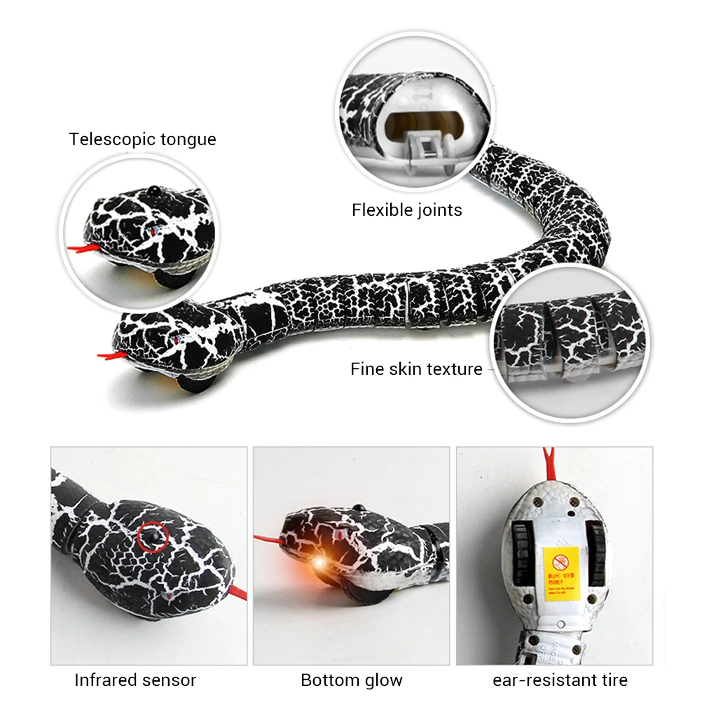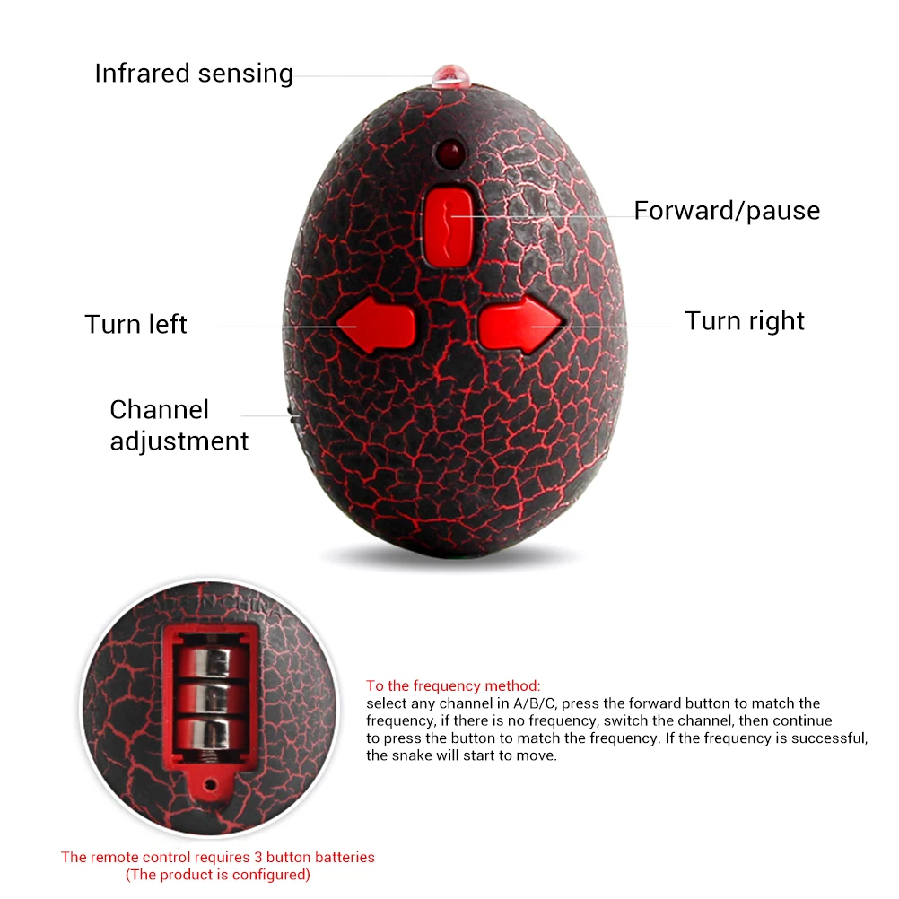 Сегментированное тело для превосходного скользящего действия. Вперед, влево и вправо поворот, остановка, выдвижной язык, качающийся хвост.