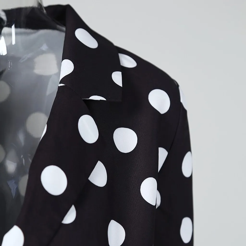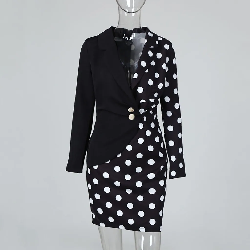 Модный женский облегающий блейзер в горошек с длинными рукавами и пуговицами, платье для работы
