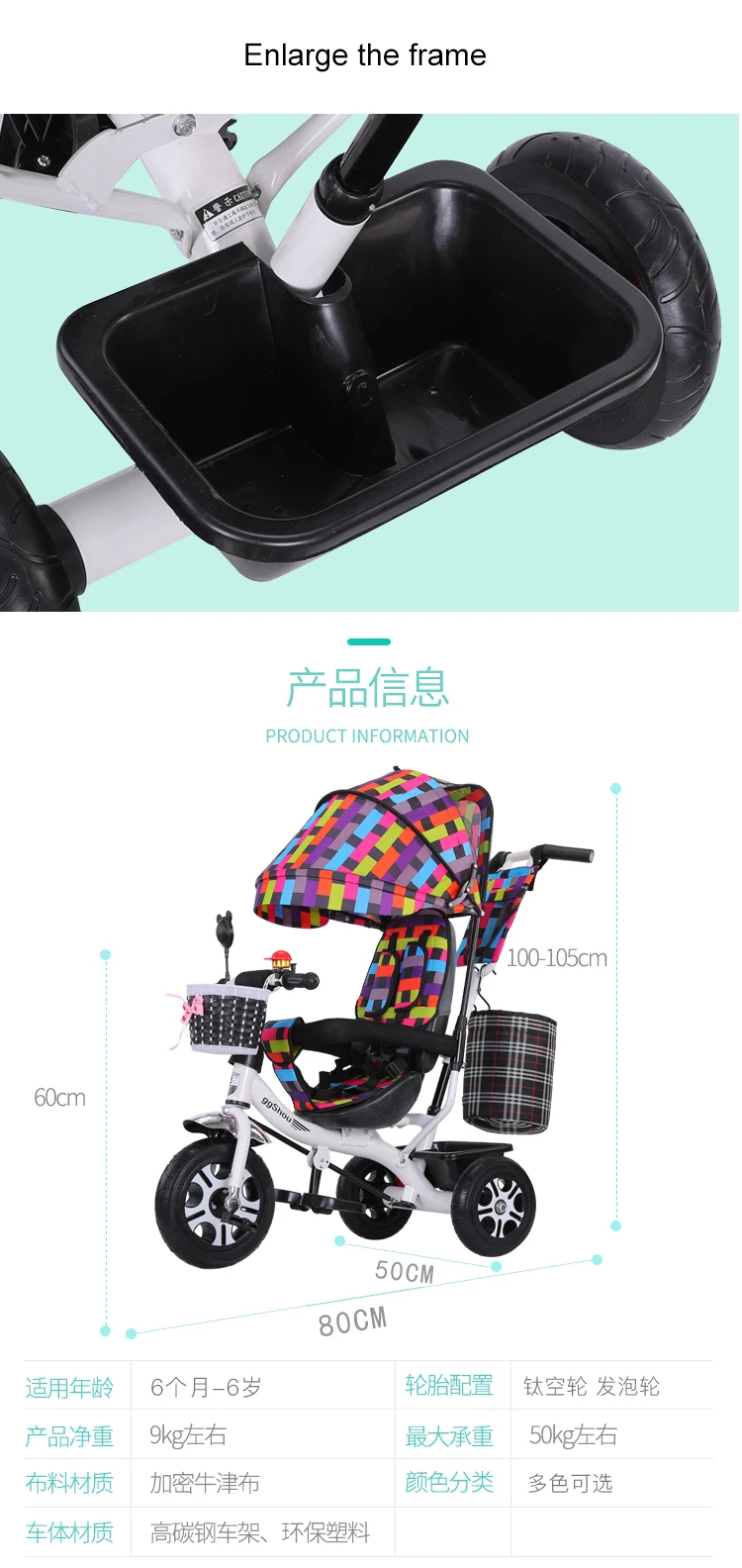 Детская трехколесная велосипедная От 1 до 6 лет, Детская трехколесная коляска, детская дорожная коляска, светильник, музыкальная тележка