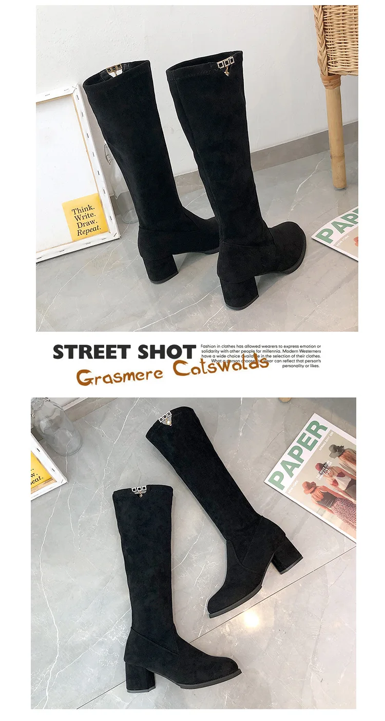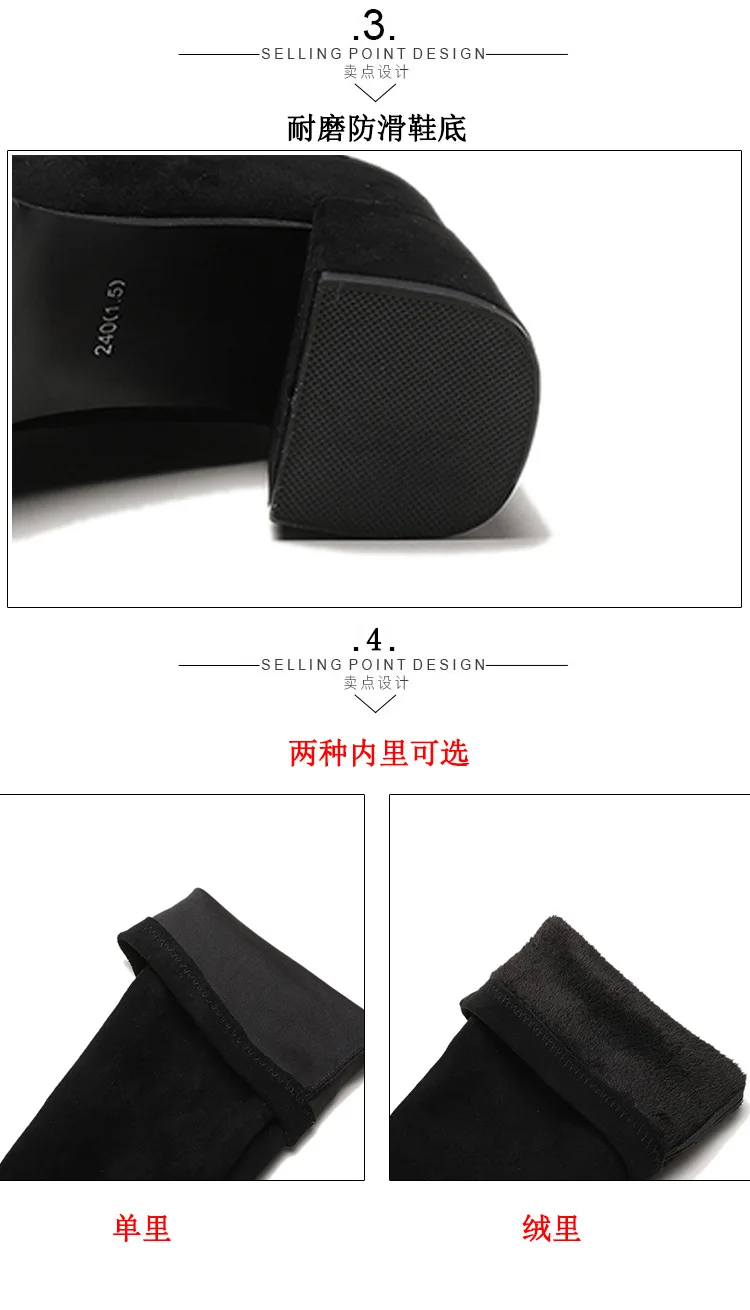 2019 Autumn Winter Suede Leather Black Martin Boots Women'S Shoes Plus Velve Warm Solid High Heel Snow Boots Women Cotton Shoes
