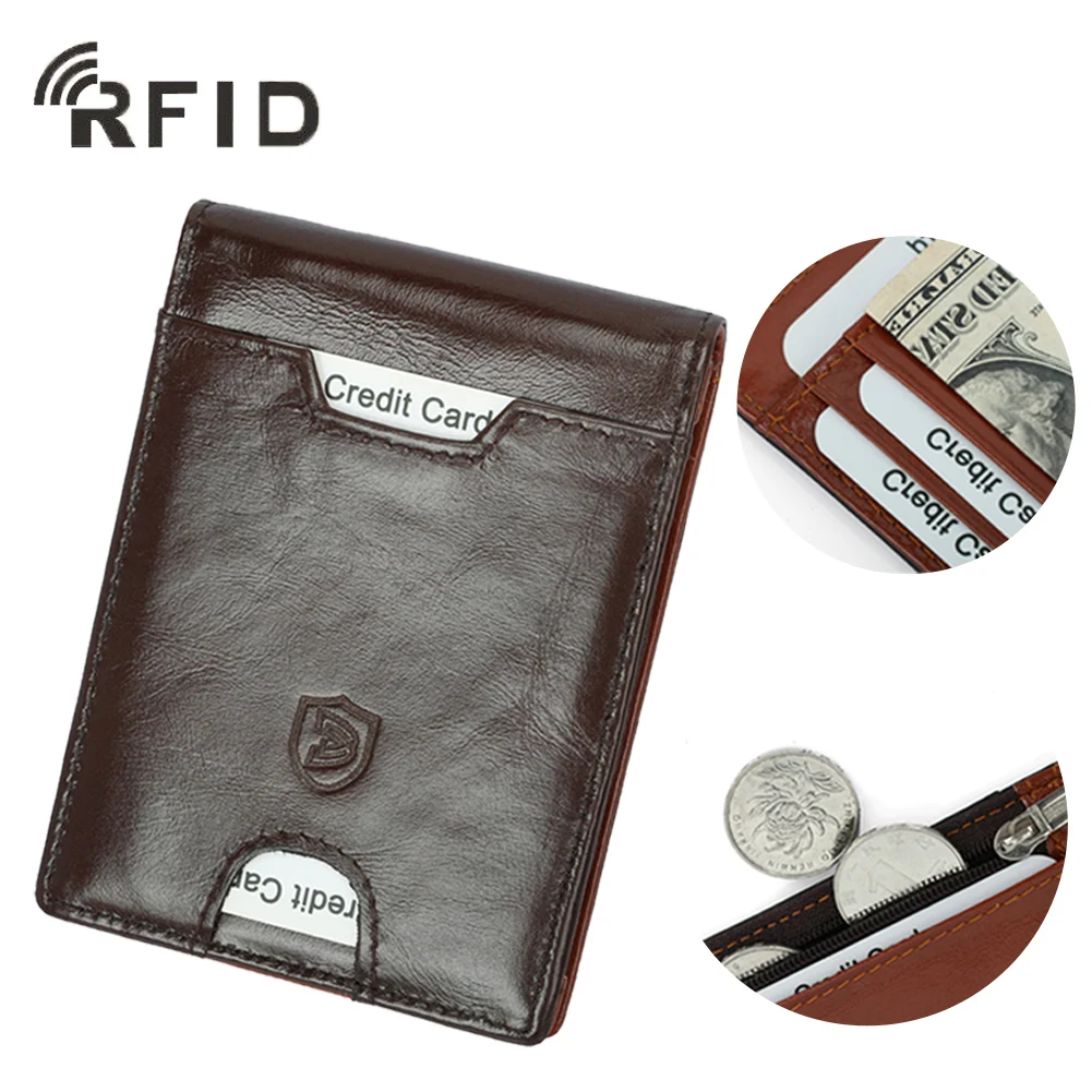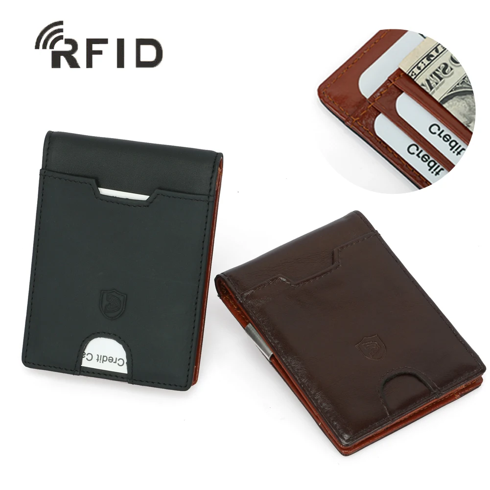Мужской тонкий бумажник из натуральной кожи, RFID блокирующий держатель для карт, зажим для денег Материал: первый слой воловьей кожи