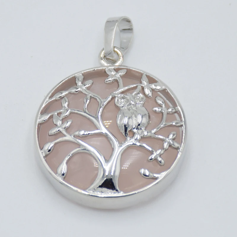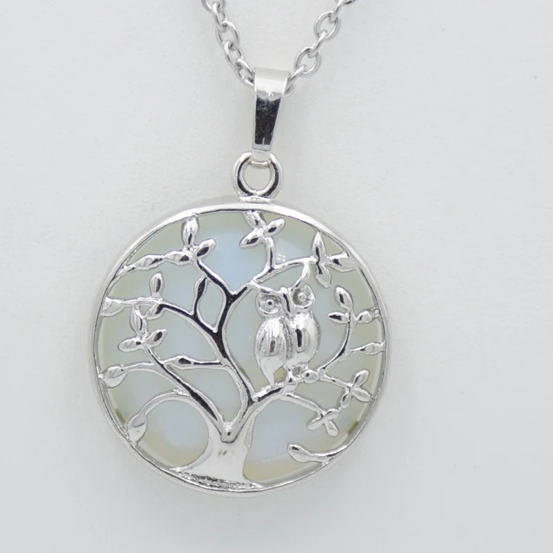 Женские Подвески из натурального камня с плоской бусиной, с изображением совы, деревьев, кристаллов, ожерелья ручной работы, очаровательные ювелирные изделия рейки