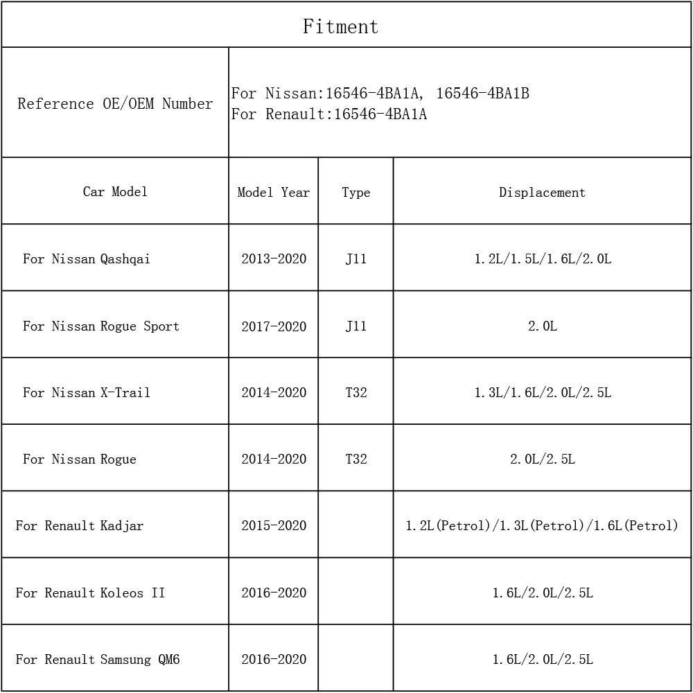 Ссылка OE/OEM номер: для Nissan: 16546-4BA1A, 16546-4BA1B, для Renault: 16546-4BA1A