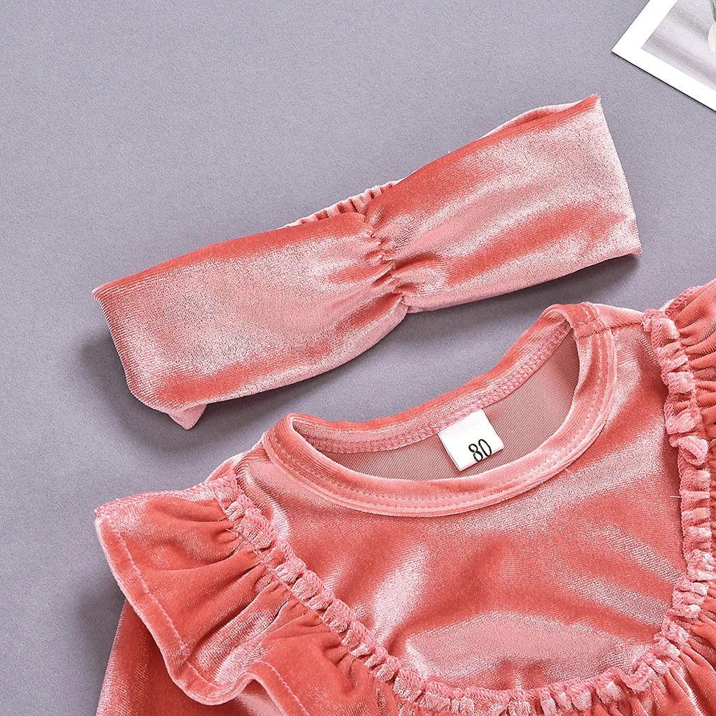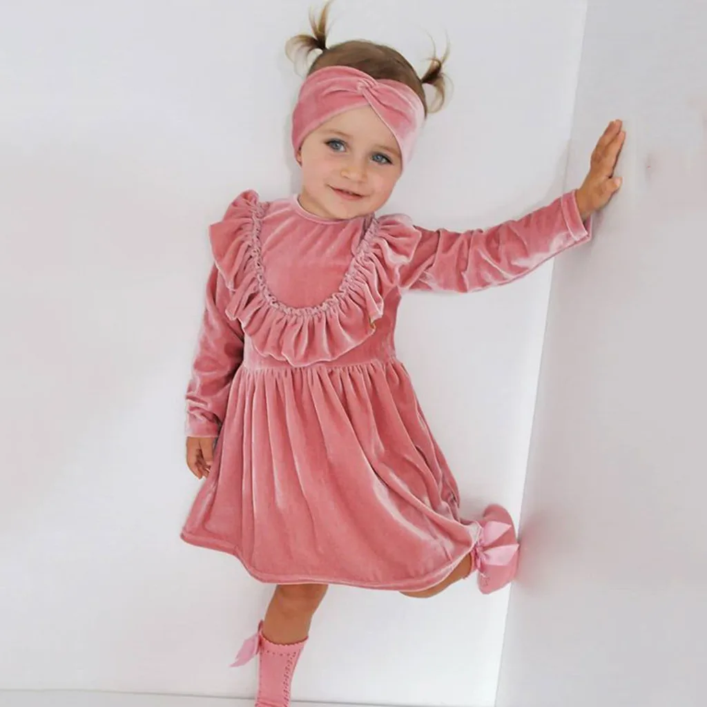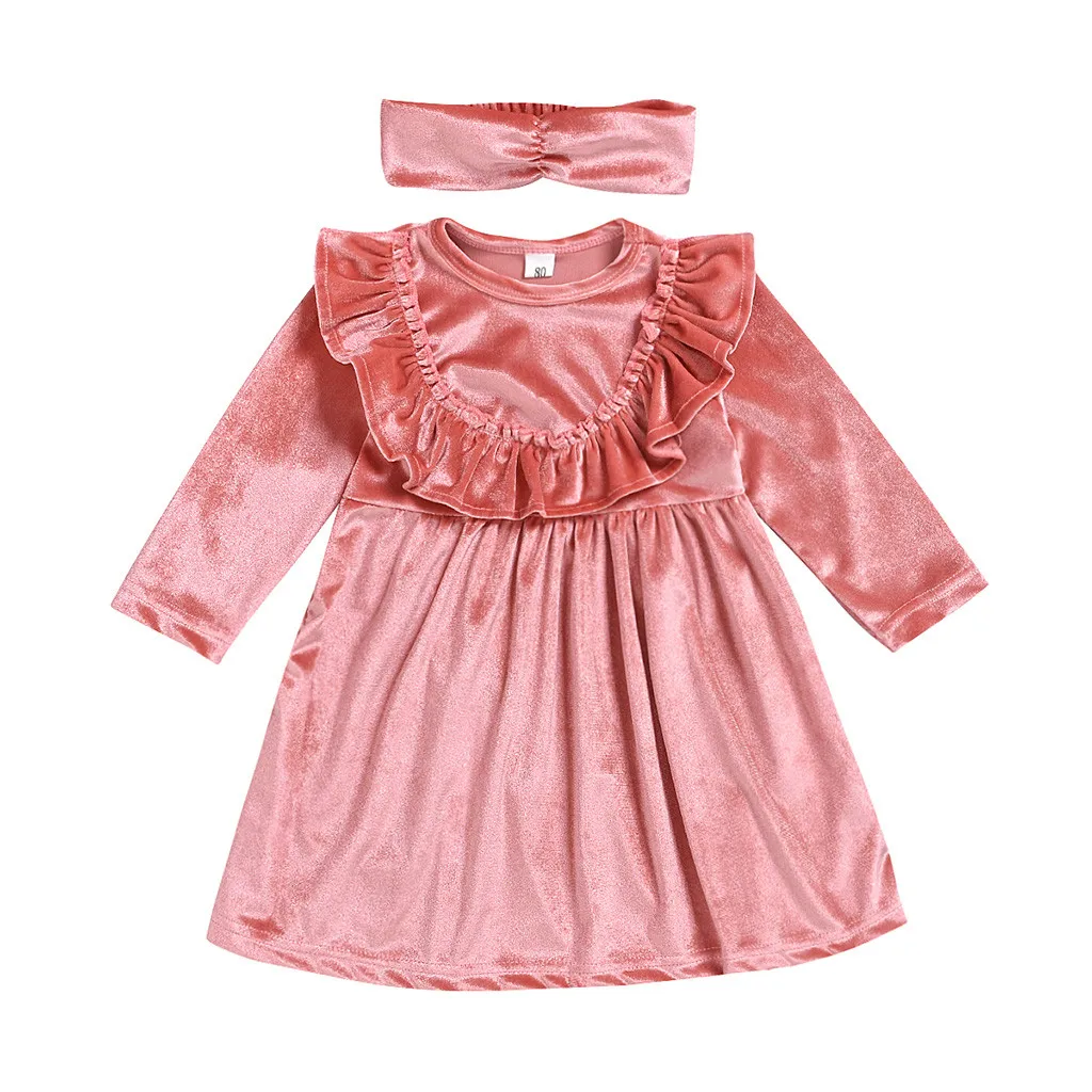 Однотонное платье принцессы с оборками для маленьких девочек; Одежда с повязкой на голову