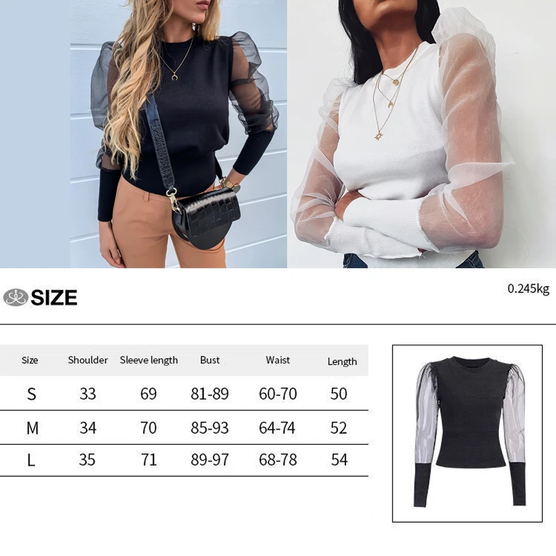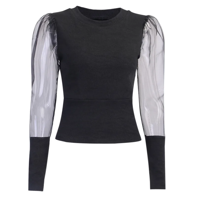 Женская однотонная сетчатая рубашка с длинными рукавами-фонариками, свободная Повседневная Блузка