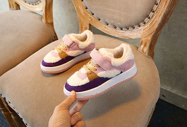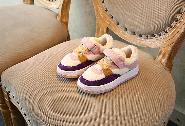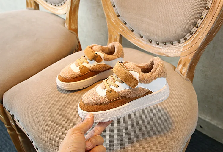 Новые зимние детские повседневные кроссовки; Детские меховые спортивные кроссовки; Обувь из натуральной кожи для маленьких мальчиков; Брендовые белые кроссовки для девочек
