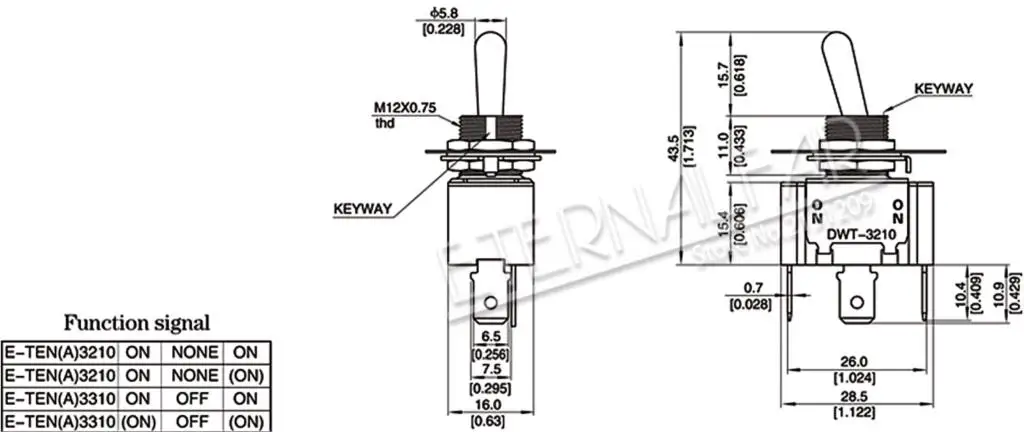 3PIN-ON:Однополюсный двойной бросокSPDT