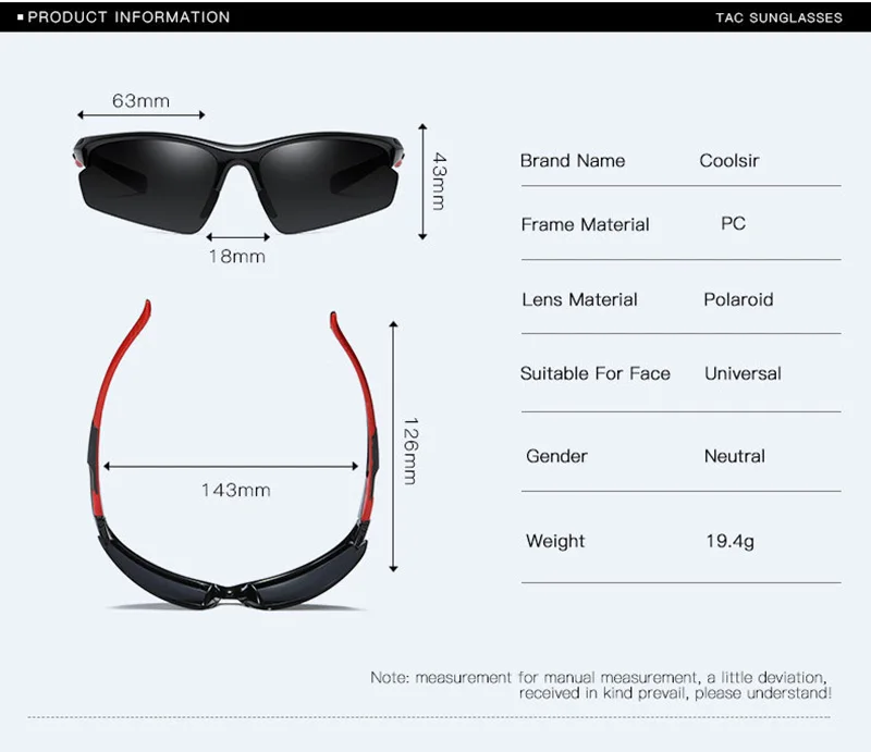 Suitable For Face:Universal Glasses material:PC Function:UV protection, anti-glare Occasion:riding, field, fishing, driving weight:19.4g