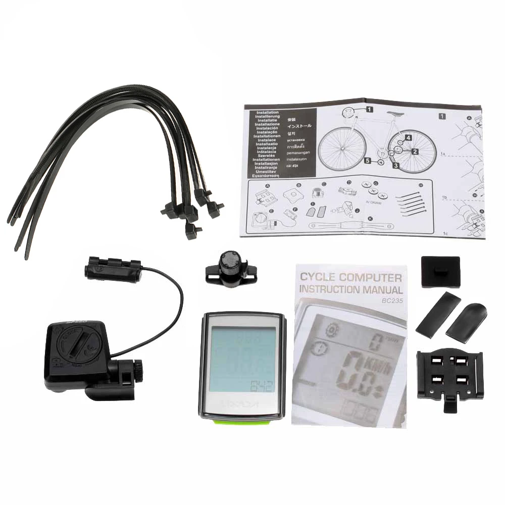 Многофункциональность:Беспроводной Велосипедный компьютер с ЖК-дисплеем. Автоматическое включение/выключение. 2 велосипедная система. Подсветка EL.