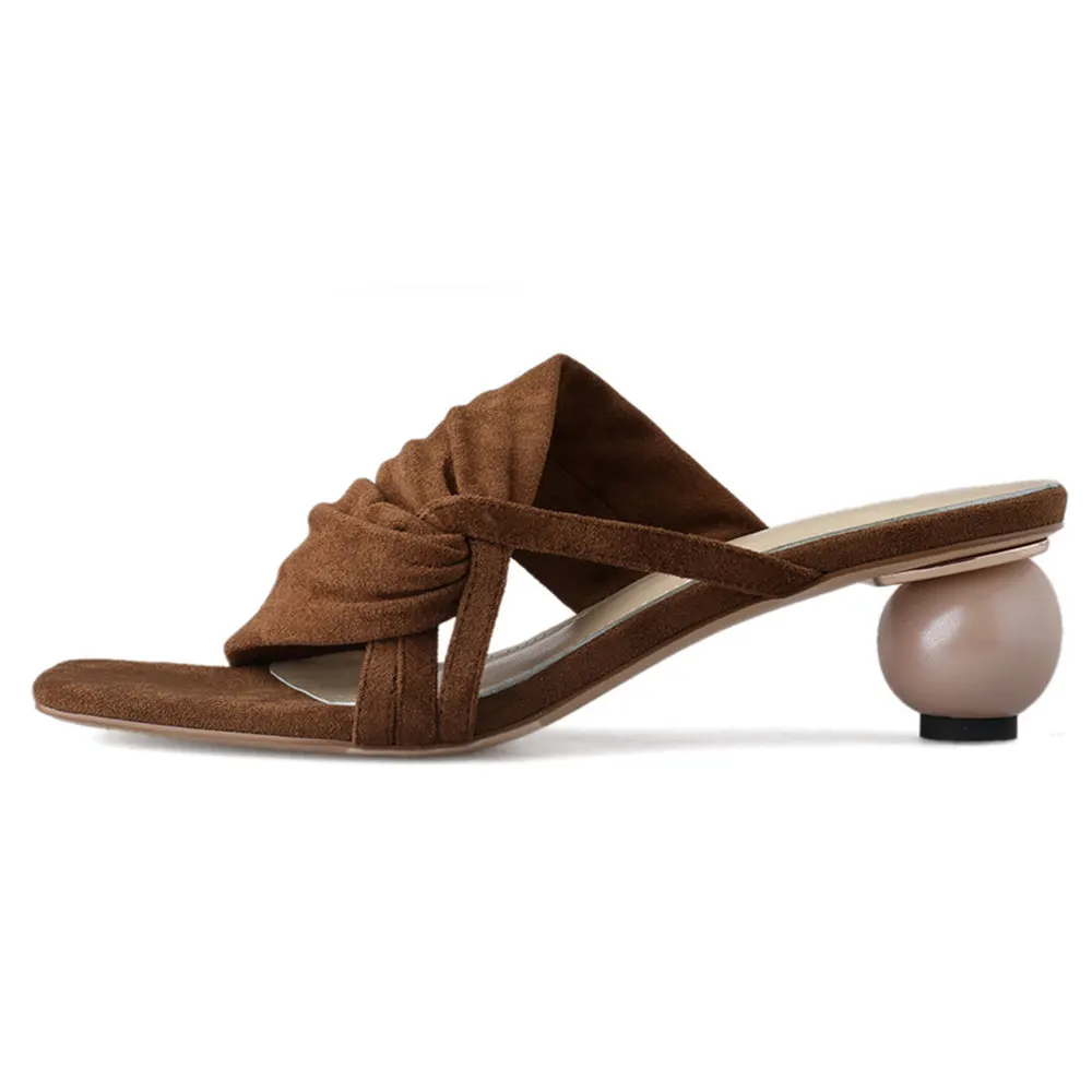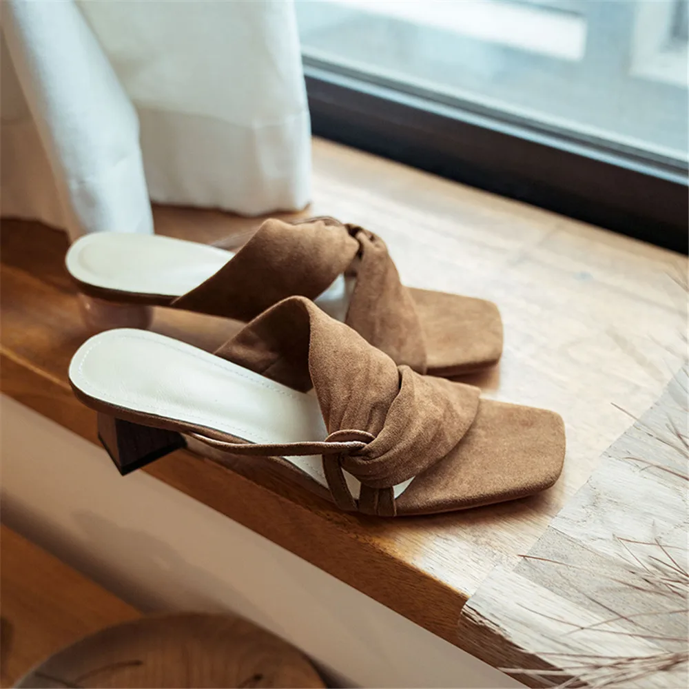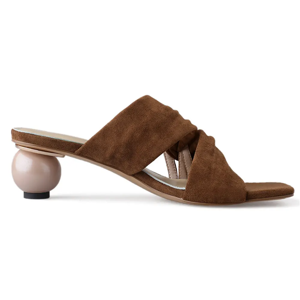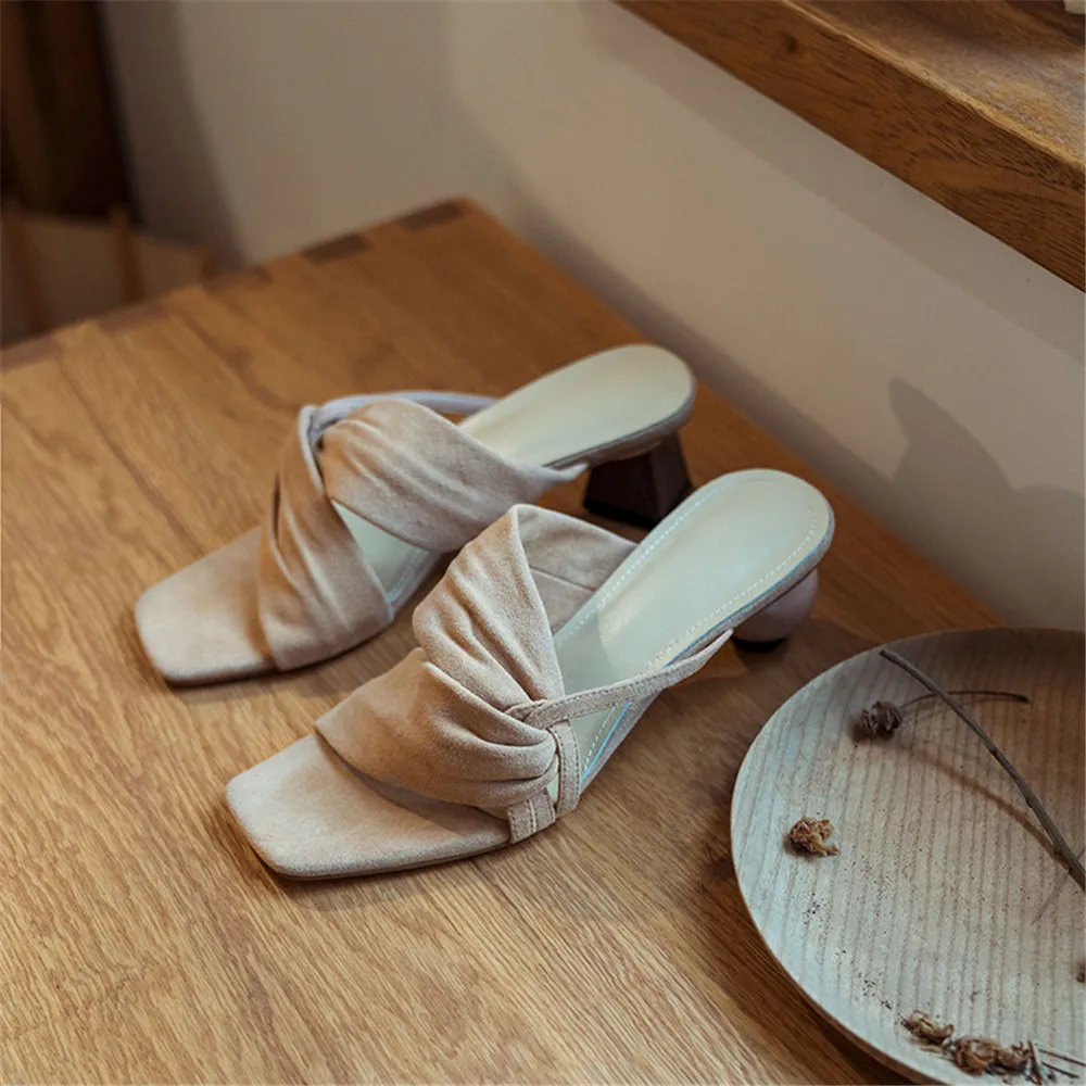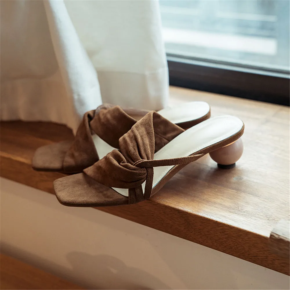 Летние женские босоножки; Тапочки из натуральной кожи; Необычный стиль; Повседневные модельные туфли на высоком каблуке; Модные Босоножки с открытым носком; Мюли