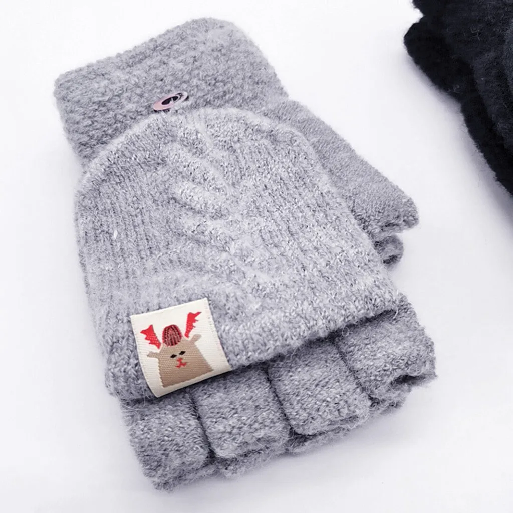 Детские зимние теплые вязаные откидные перчатки без пальцев