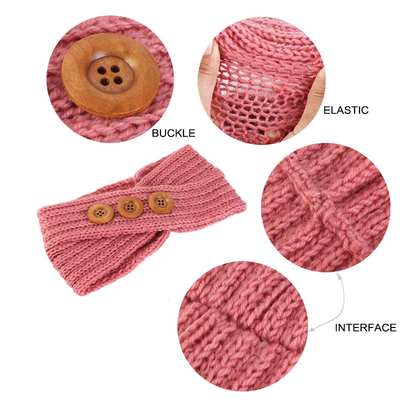 Зима 3 деревянными пуговицами крест узел трикотажные стильная повязка на голову с ушками теплые головной обруч