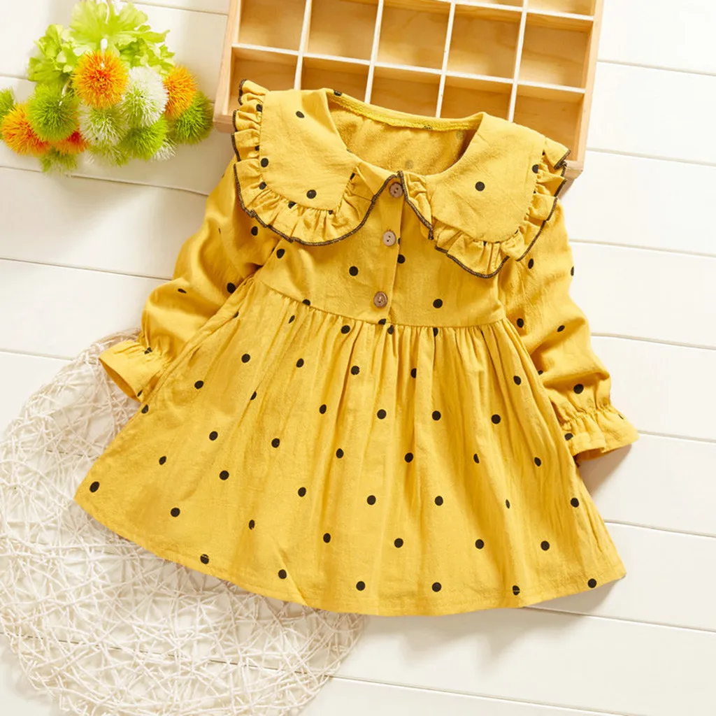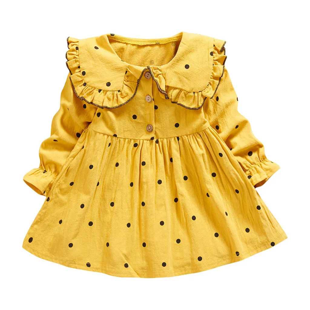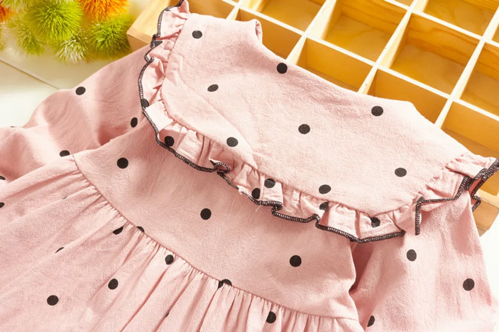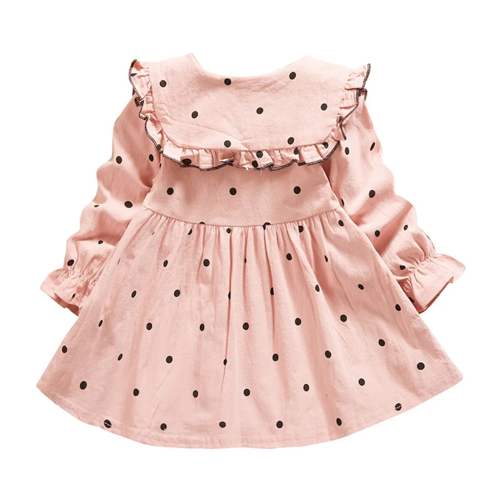 Платье принцессы в горошек с воротником «Питер Пэн» для маленьких девочек повседневная одежда