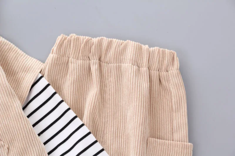 Комплект детской одежды на осень, футболка в полоску для маленьких мальчиков и девочек, жилет с капюшоном и штаны, 3 шт./компл., детская спортивная одежда для малышей, 2019Для детей 0-4 лет