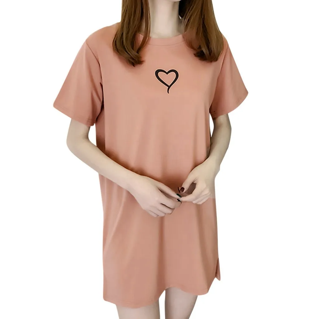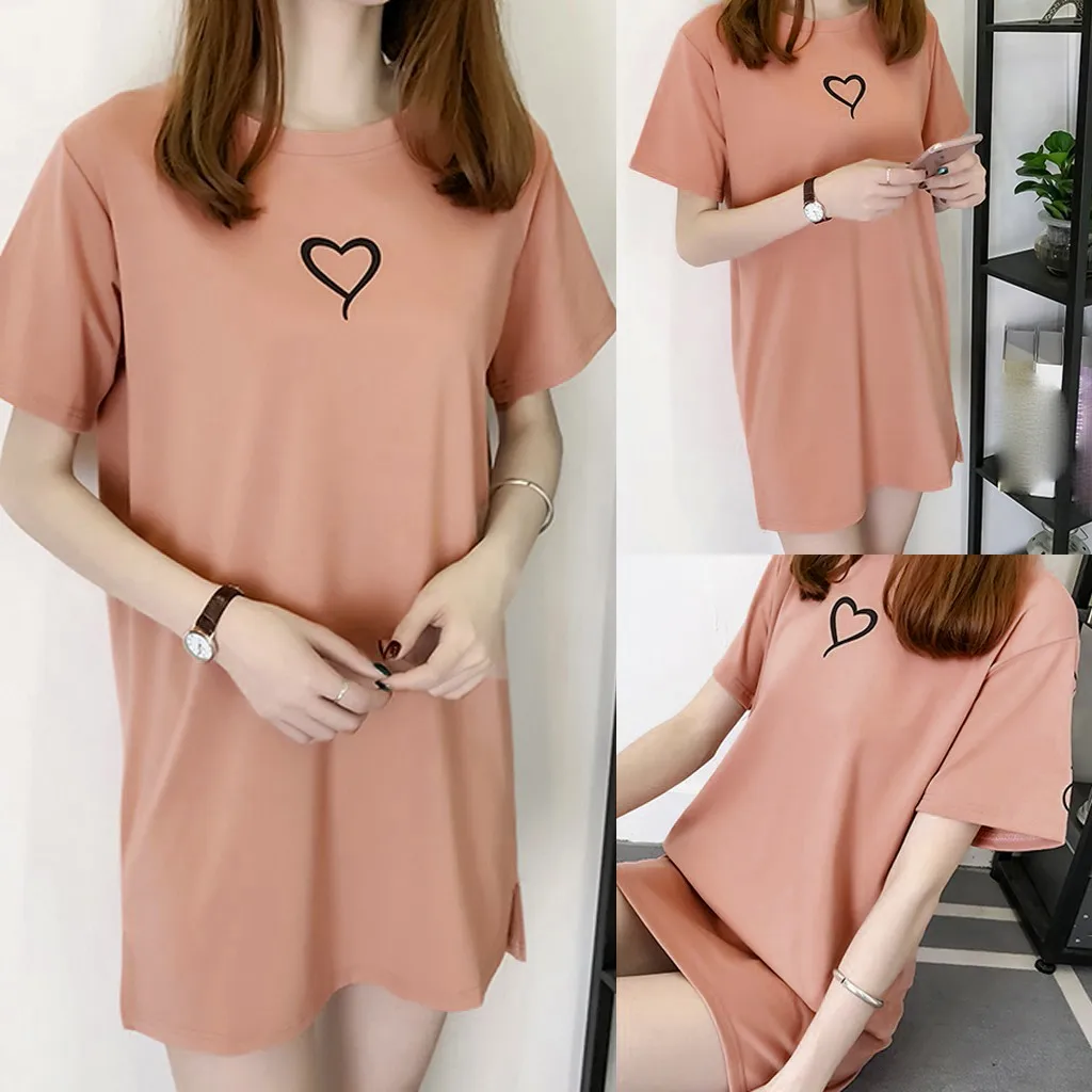 Модное женское платье-футболка с круглым вырезом и коротким рукавом; Свободное платье для отдыха