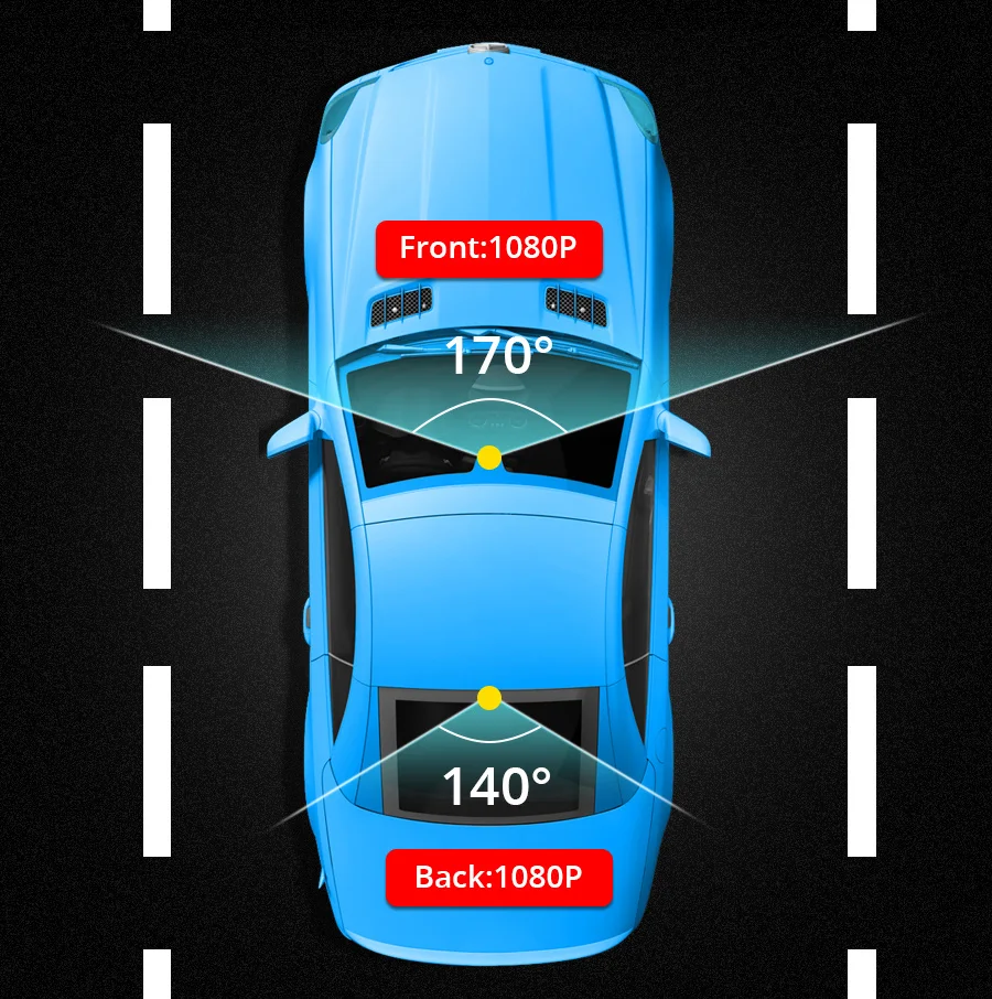 ★【Двойные камеры с широким FOV】 Acceo A39 dual Cams обеспечивают разрешение видео FHD 1080P + 1080P. Предлагаем вам более четкую съемку номерных знаков с расстояния. 170 ° регулируемая передняя линза и 140 ° Задняя крышка объектива всего 310 ° поле зрения, чтобы уменьшить слепую область и запечатлеть больше сцен на дороге.