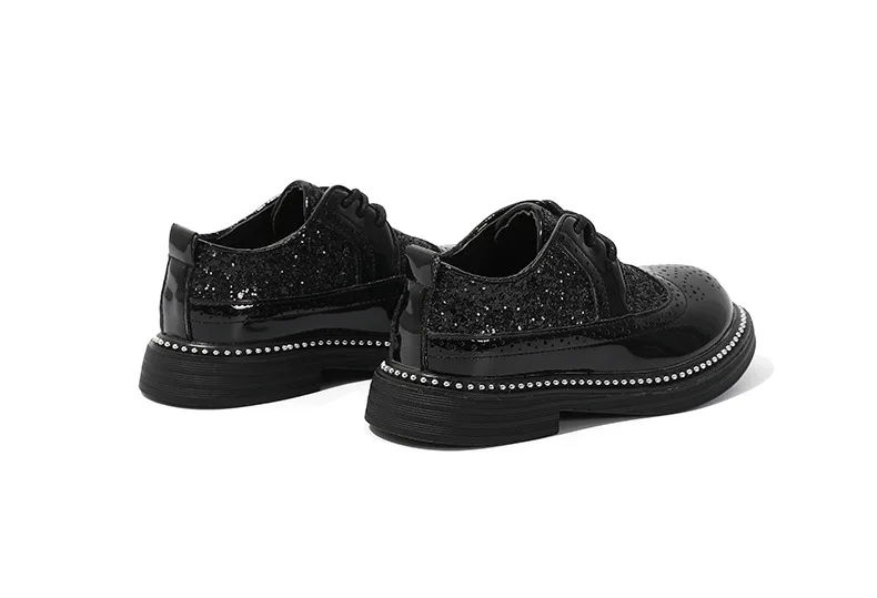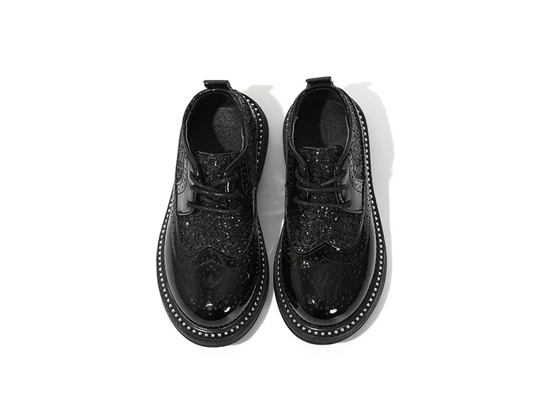 Весенняя детская обувь из искусственной кожи; Черная Брендовая обувь для маленьких девочек; Детские туфли-оксфорды для танцев; Модная школьная обувь на мягкой платформе с блестками для мальчиков
