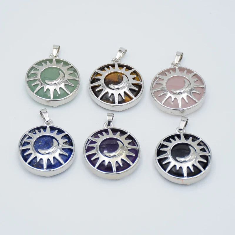 Женский и мужской подвесной рейки Sun & Moon, заживляющий круглый натуральный камень, белый кристалл, Quartzs, тигровый глаз, бусы для изготовления ювелирных изделий, ожерелье