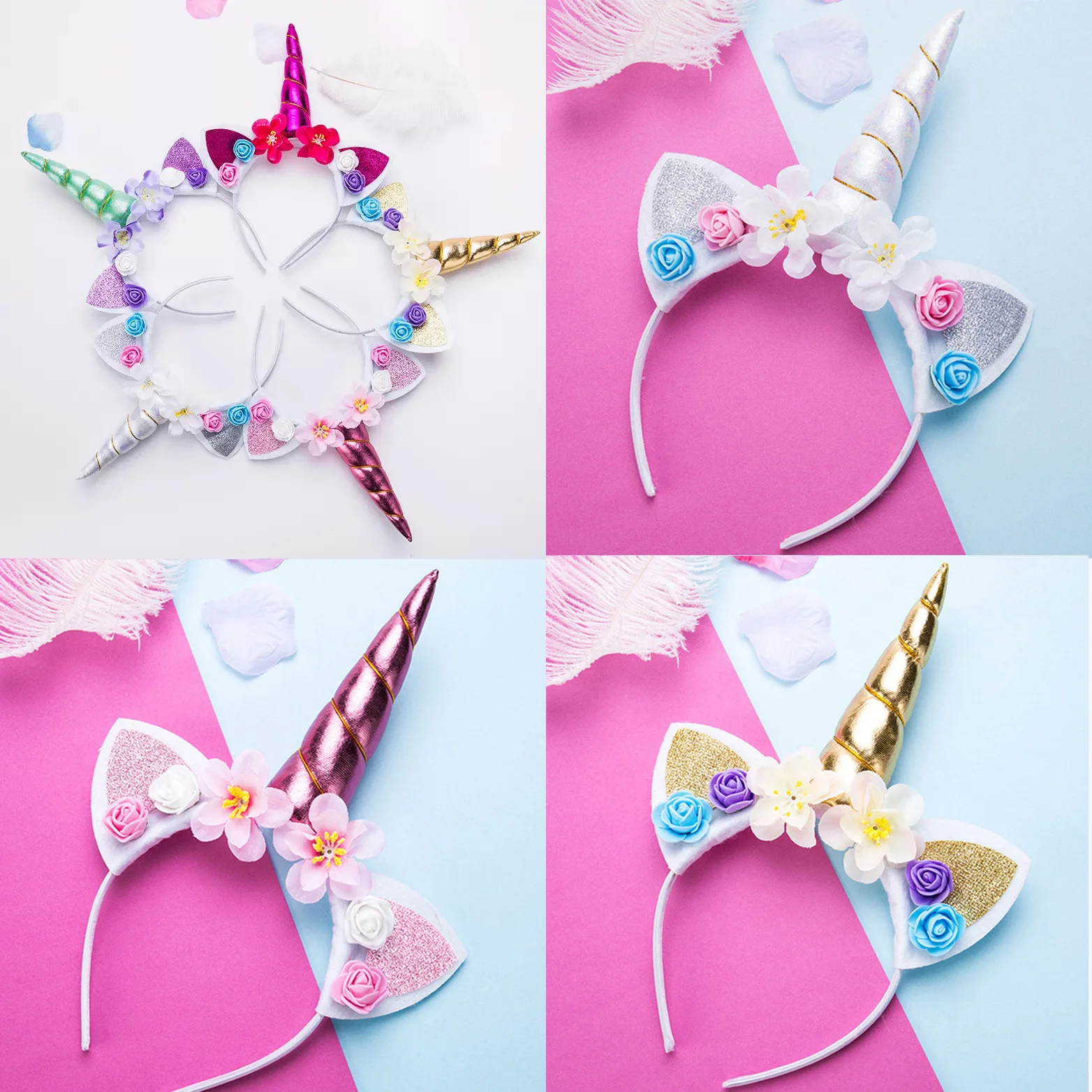 Милый Единорог Девушки Цветок ободки с кошачьими ушками Детские головные повязки фото-реквизит обруч для волос для вечеринки аксессуары для волос для детей