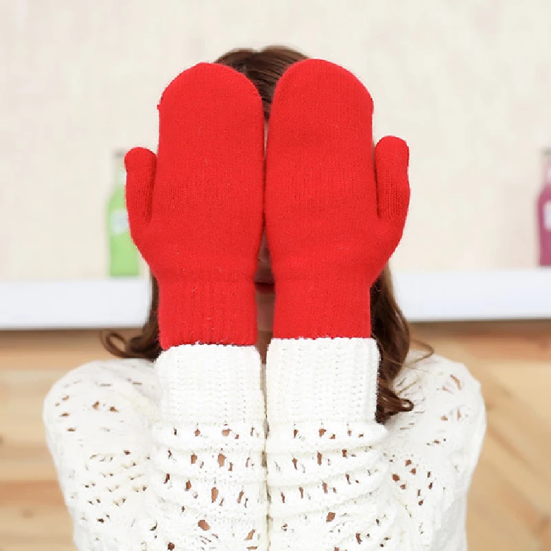 Double Layer Faux Rabbit Fur Gloves Fashion Winter Soft Warm Pure Color Mittens
