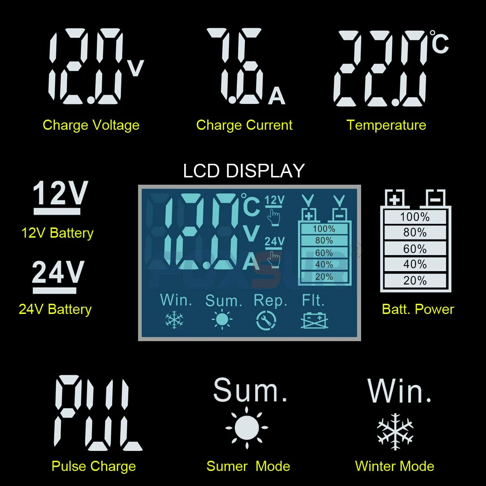 Типы батарей: большинство типов свинцово-кислотных батарей, включая кальций, гель и AGM, влажные, EFB и т. Д.