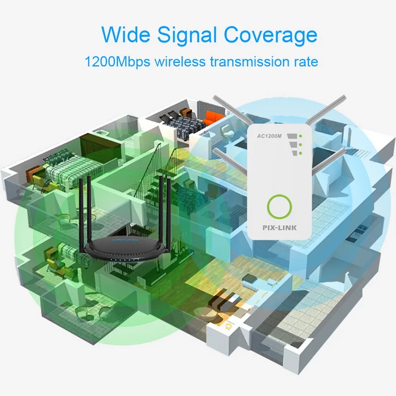 Signal rate:2.4GHz 300Mbps; 5GHz: 867Mbps