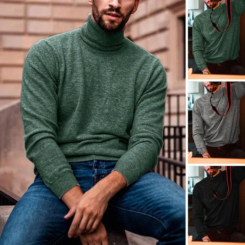 Готический Modis мужской свитер с высоким воротником, зимний теплый мужской хлопковый свитер, стрейчевый трикотажный облегающий джемпер для фитнеса, мужской свитер