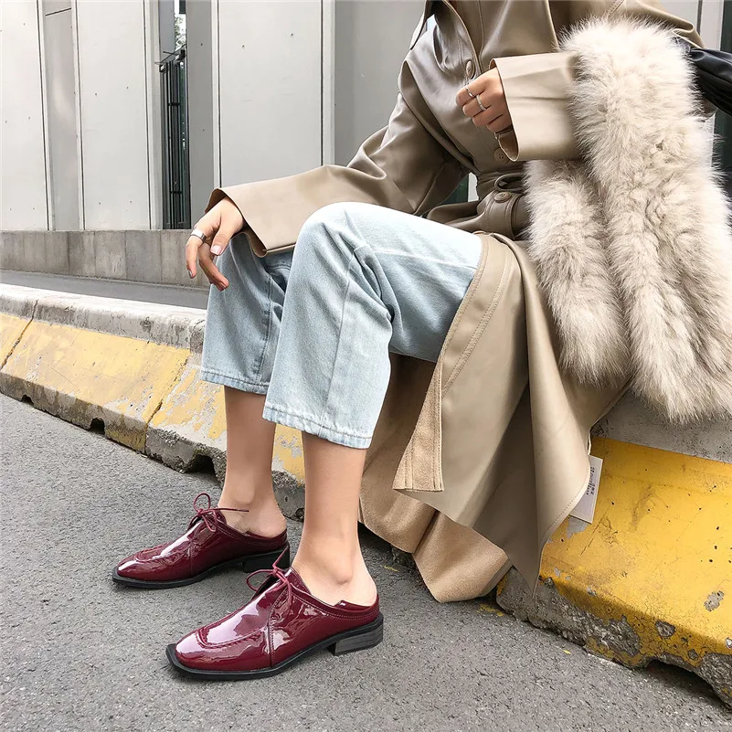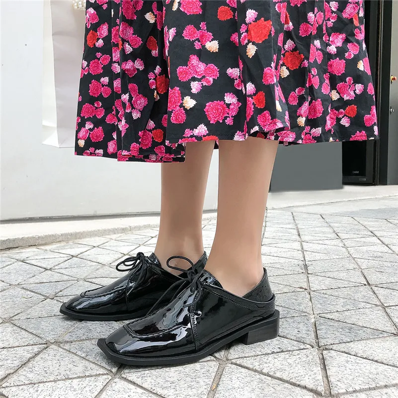 Meotina High Heels Women Shoes Natural Genuine Leather Thick Heel Shoes Cow Patent Leather Square Toe Pumps Lady 2020 Size 34-39
