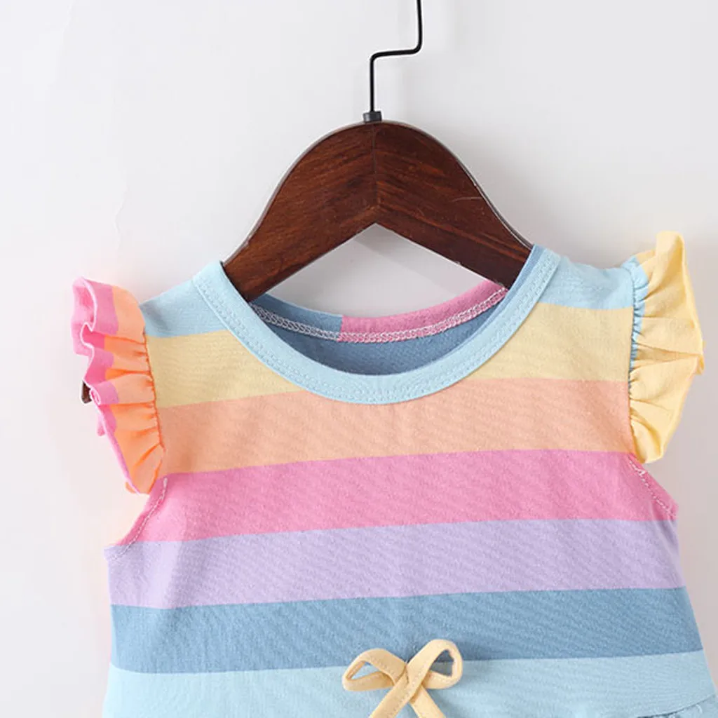 Платье в радужную полоску с рюшами и крыльями для маленьких девочек повседневная одежда для сестер