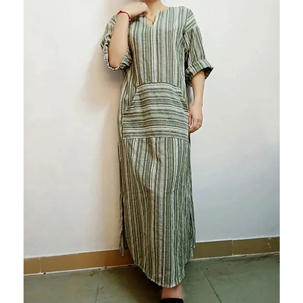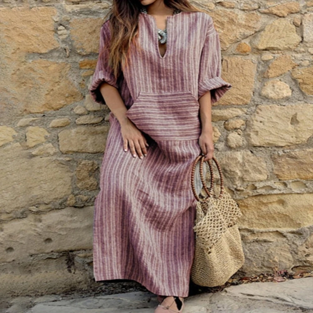 -Длинный рукав, v-образный вырез, боковой карман, разрез по бокам, чистый цвет, прямой подол. Пляжные вечерние платья в стиле бохо, лучше показать вашу фигуру.