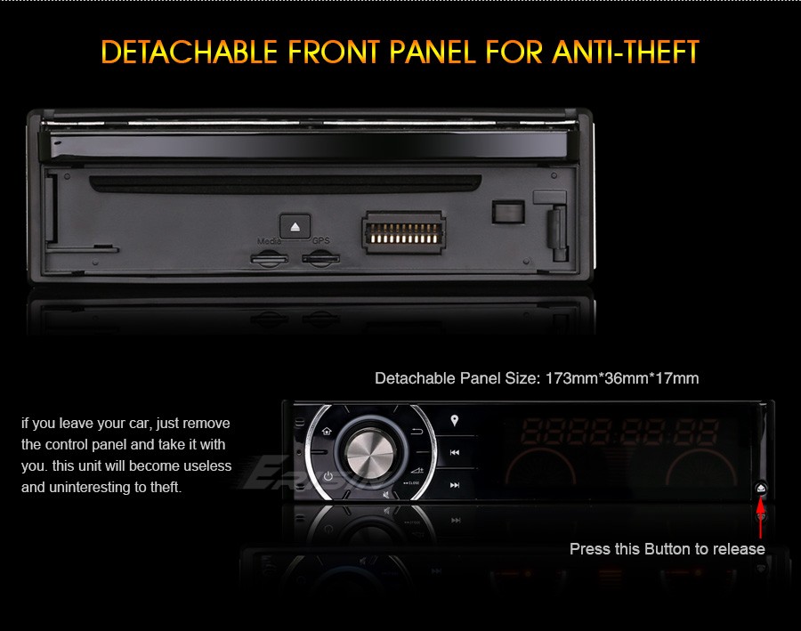 -Съемная передняя панель для противоугонной конструкции. Полностью моторизованный выдвижной экран, просмотр