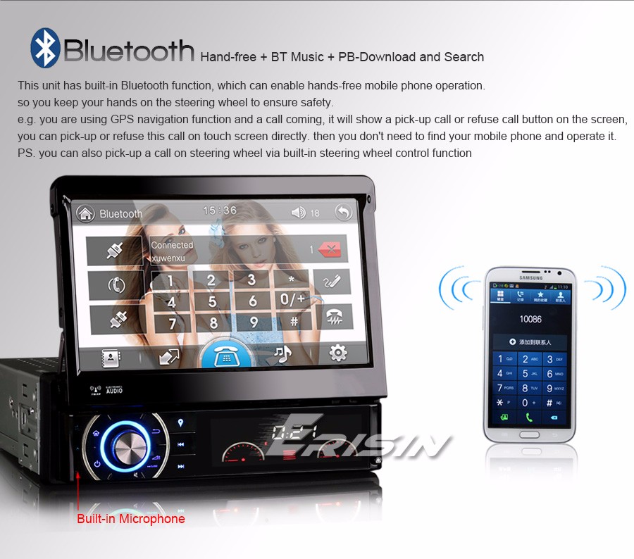-Поддержка функции Bluetooth hands-free, встроенный микрофон на передней панели и внешний