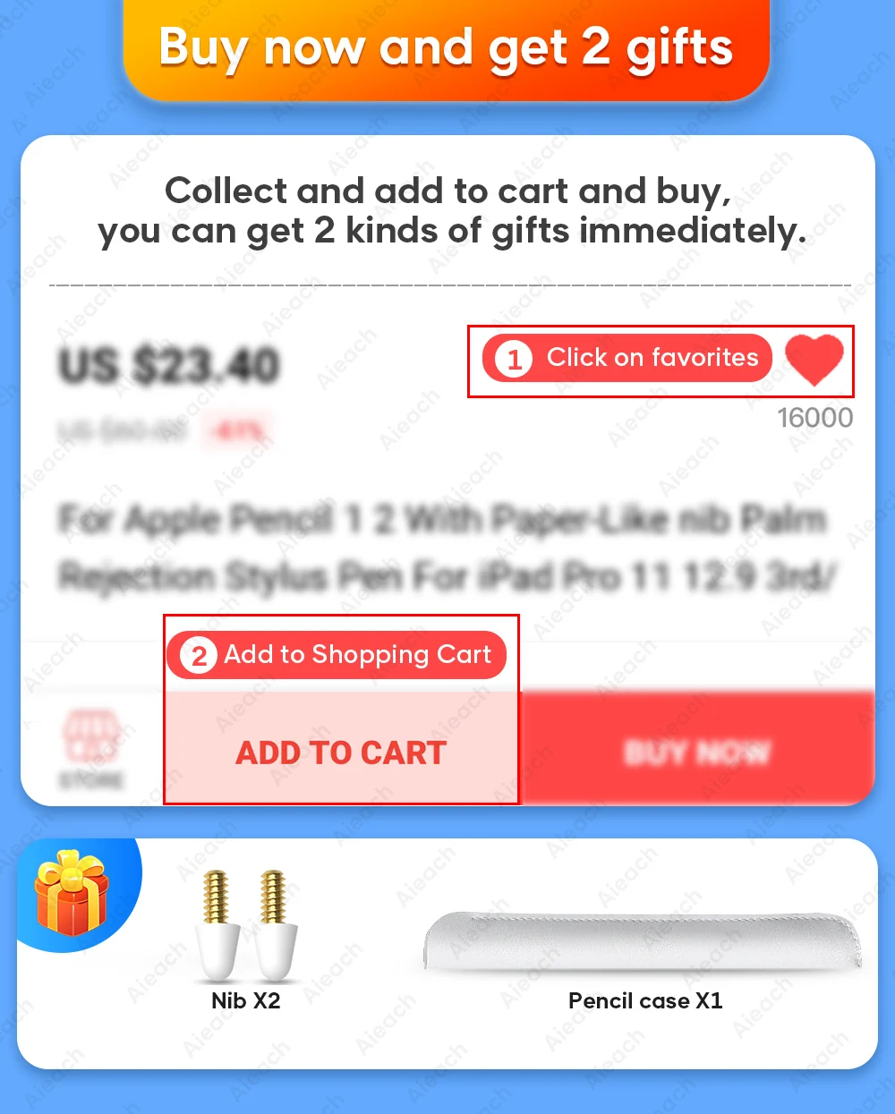 При покупке, после добавления товара в корзину, мы дадим вам 2 шт. подарок: Пенал * 1 Запасной наконечник * 2