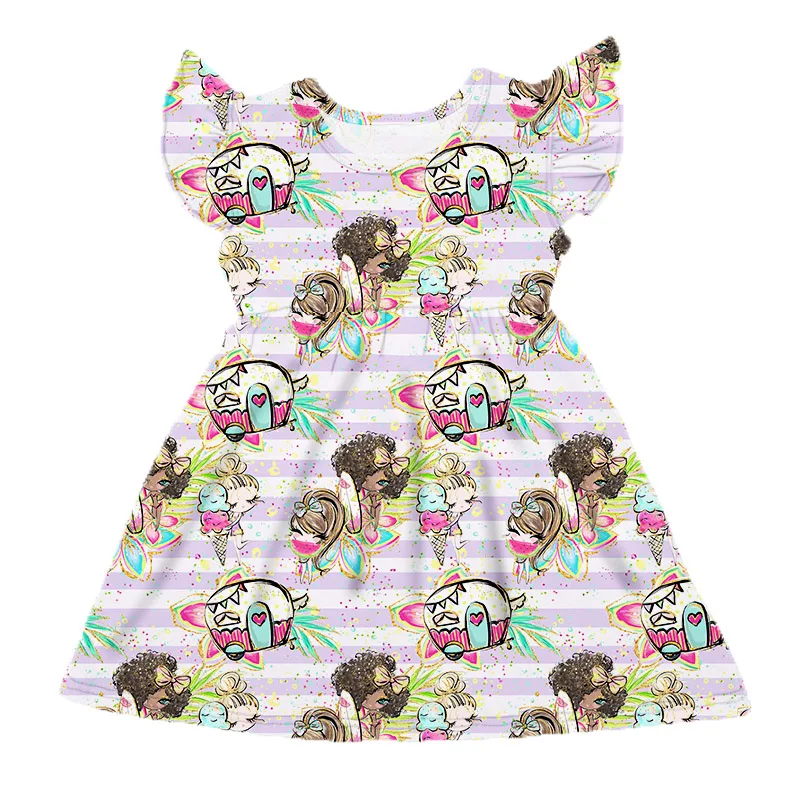 Chidlren Kids Girls Dress Flutter Sleeve Cartoon Summer Dress Girl Milk Silk Clothes Toddler Girls Party Dress Princess Costumes