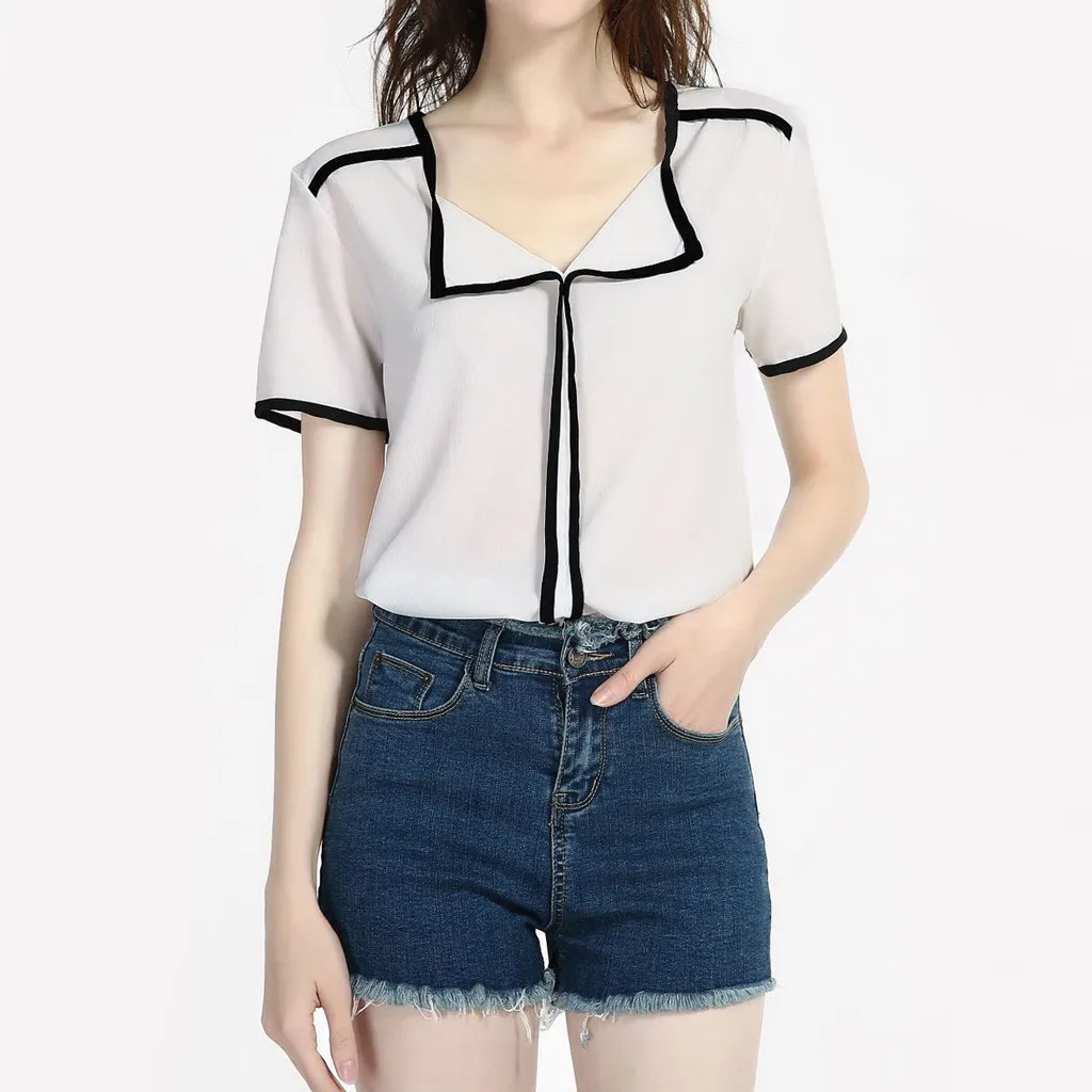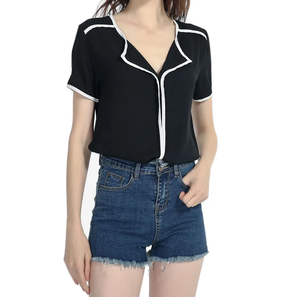 Женская Повседневная шифоновая блузка с коротким рукавом и v-образным вырезом
