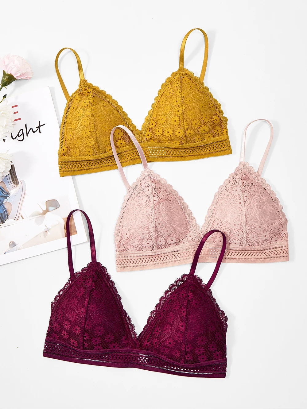 Потрясающий бюстгальтер с красивым кружевом с цветочным рисунком маргаритки, с сетчатой лентой, оставляет сексуальный и милый след.