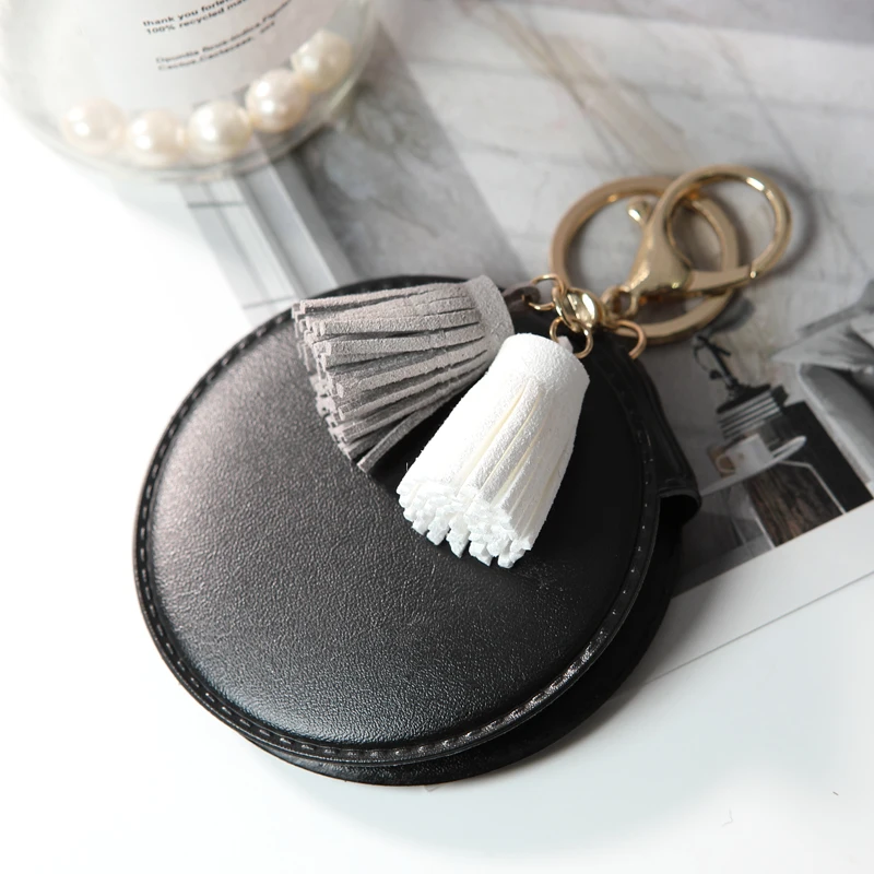 Мини-карманное зеркало для макияжа из искусственной кожи, брелок