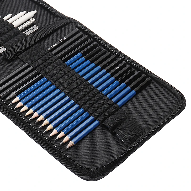 Поставляется с сумкой для хранения на молнии для удобной переноски и хранения всех карандашей и инструментов в подготовленном состоянии и в хорошем порядке.