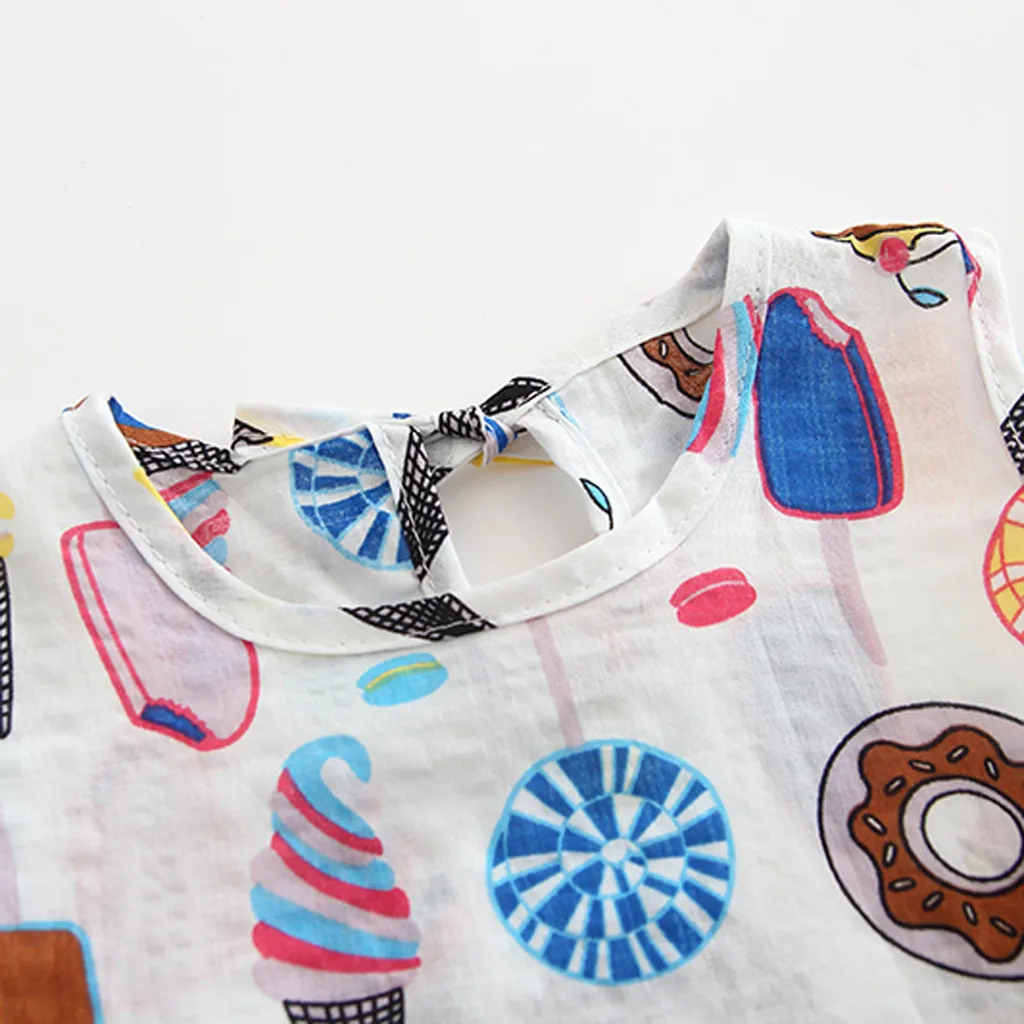 Платья без рукавов с принтом мороженого для маленьких девочек повседневная одежда