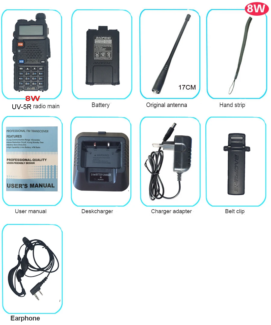 Высокая мощность 8 Вт baofeng UV-5R портативная рация UV 5R FM VHF/UHF двухдиапазонное двухстороннее радио для охоты Ham двухстороннее радио