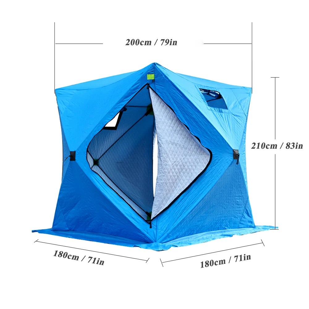 Ветрозащитное и непромокаемое укрытие, легко установить и защитить вас от сурового ветра и холода. Вместительный для 3-4 человек, очень приятный для рыбалки на льду с друзьями.