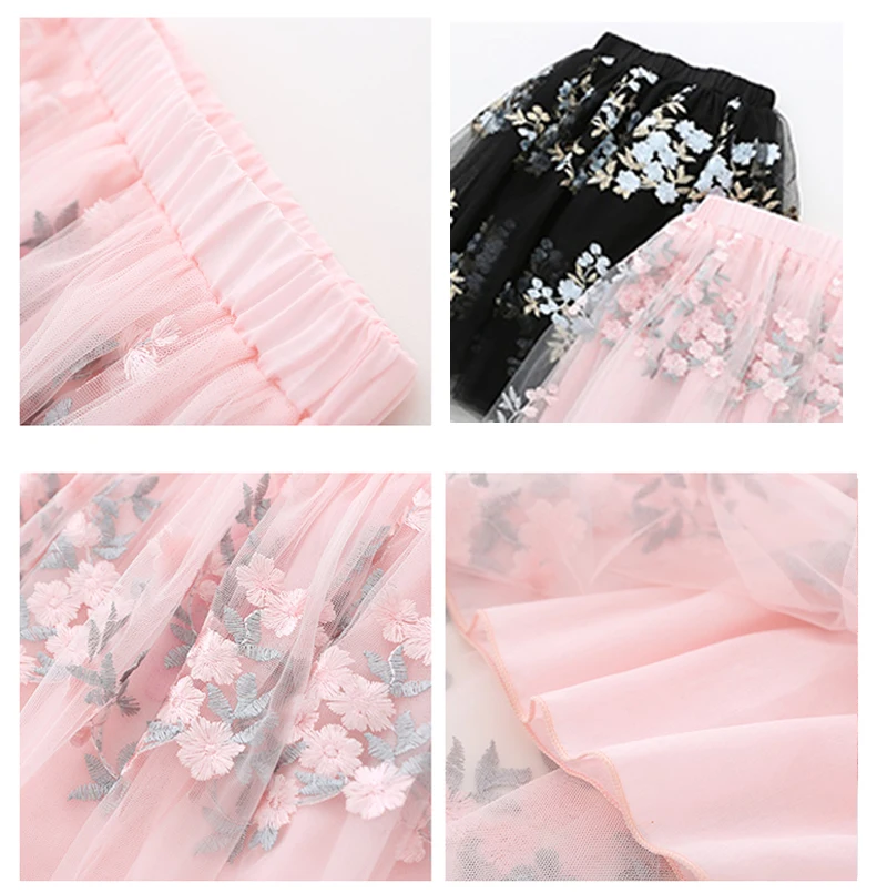 Многослойная юбка-пачка для девочек, детская бальная юбка с цветами, длинная юбка принцессы для девочек 4, 6, 8, 10, 12, 14 лет, 2020