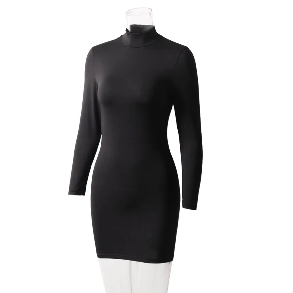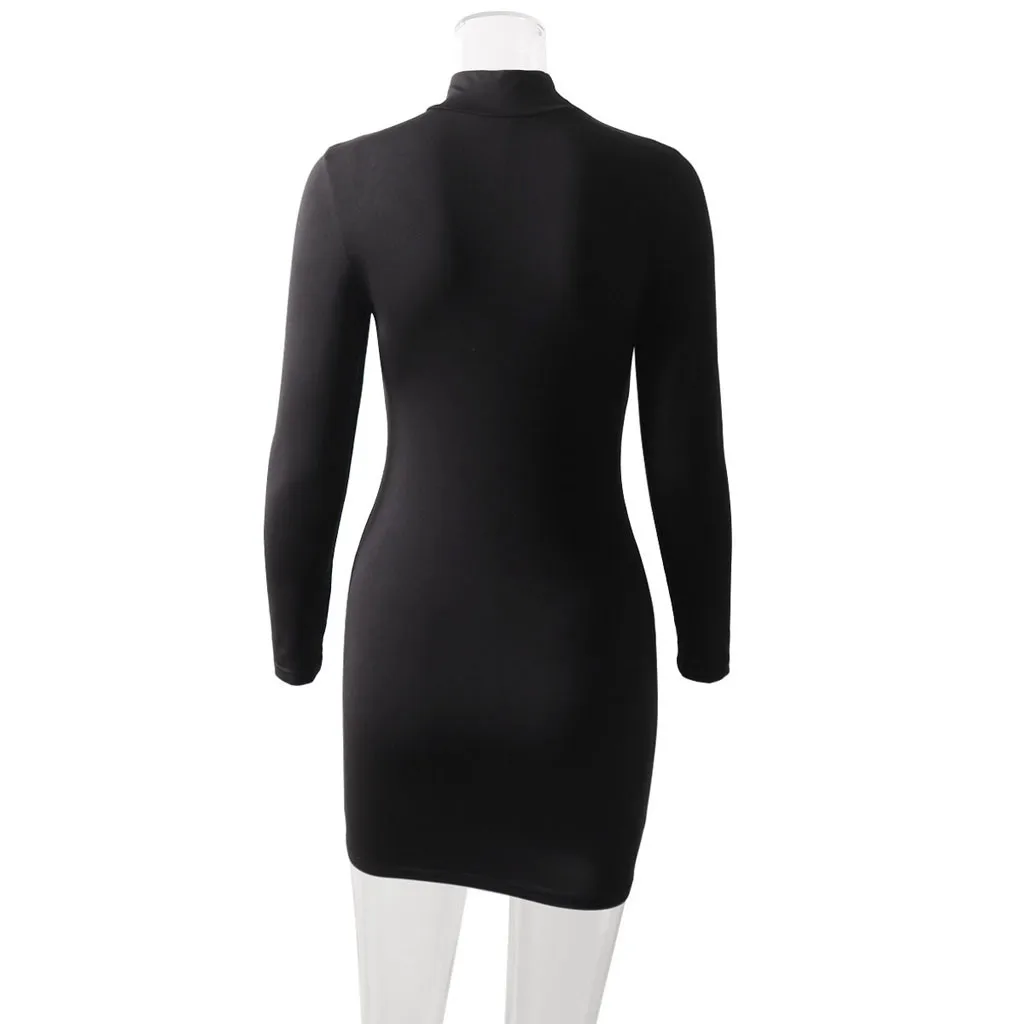 Модное женское сексуальное однотонное облегающее мини-платье с длинным рукавом и воротником-стойкой