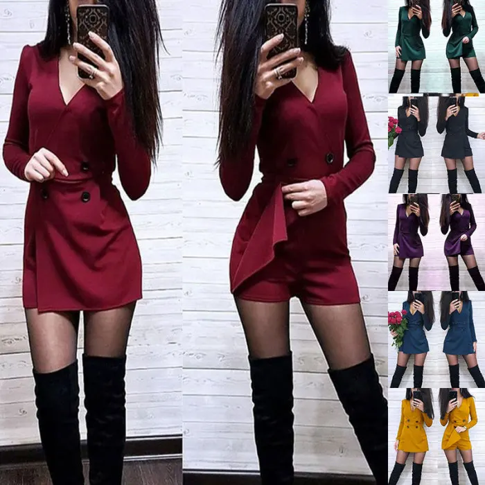 Женский комбинезон с длинным рукавом, короткий, v-образный вырез, модный, деловой, офисный, OL, комбинезоны MUG88