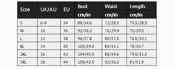 Размер UK/AU EU обхват груди обхват талии длина