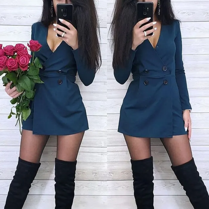 Тип одежды: женский комбинезон с длинным рукавом и коротким v-образным вырезом, деловой офисный комбинезон OL