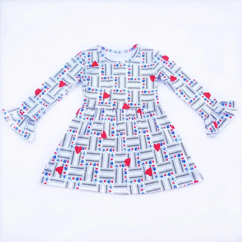 Платье на День святого Валентина для маленьких девочек Эксклюзивное платье принцессы из молочного шелка с рюшами и расклешенными рукавами Вечерние платья в форме сердца для маленьких девочек