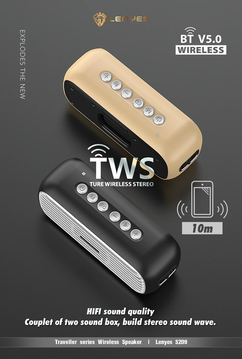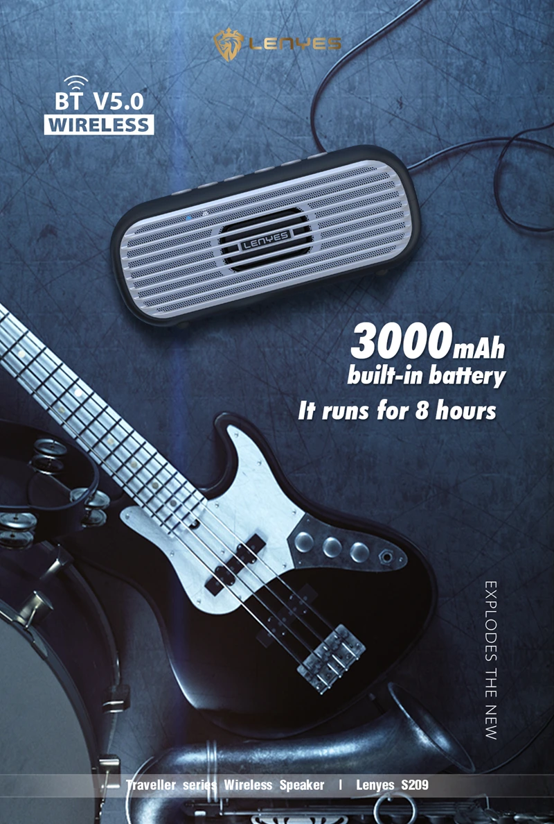 Партномер: S209 Динамик: 20 Вт (RMS) Батарея Емкость: 3000 мА-ч Время зарядки: 3 часа Время работы в режиме воспроизведения: 8 часов со средней громкостью Версия Bluetooth: V5.0 Рабочее расстояние: 15 метров (без барьера) Вход: Микро-5V-1A Водонепроницаемый: IPX5 рейтинг Цвет: Черный, коричневый Размеры: Около 21,6x7,5x8,8 см