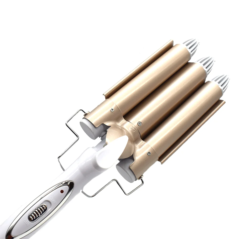 Характеристика: 1. 3 щипцы для завивки волос в бочках, просты в эксплуатации, помогут вам создать свободные, большие и красивые волны «S». 2. Нагревательный элемент PTC, Быстрое нагревание 30s. 3. Используя турмалиновую керамическую технологию, можно высвободить большое количество отрицательных ионов, уменьшая повреждение волос, делая волосы 4. Более здоровыми, естественными и более стойкими. 5. Два режима измерения температуры: 170 °C, 220 °C, удовлетворяет ваши потребности в прическе. Спецификация: Материал теплопроводности: турмалиновая керамика Напряжение: 110-220 В Частота: 50/60 Гц Мощность: 45 Вт Применимые волосы: сухие Нагревательный элемент: нагревательный элемент PTC Контроль температуры: регулируемый 170 °C, 220 °C Цвет: Золотой Длина кабеля: 1,7 м Размер: прибл. 33,5x8,2 см (Длина * Ширина) Диаметр теплового проводника: 22 мм Посылка: Бигуди для волос * 1 Руководство пользователя (английский/китайский) * 1